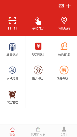 2、付积分和收积分,点击图标,显示相关的二维码(如图2-2,2-3),商家端扫描后可以做对应处理:
